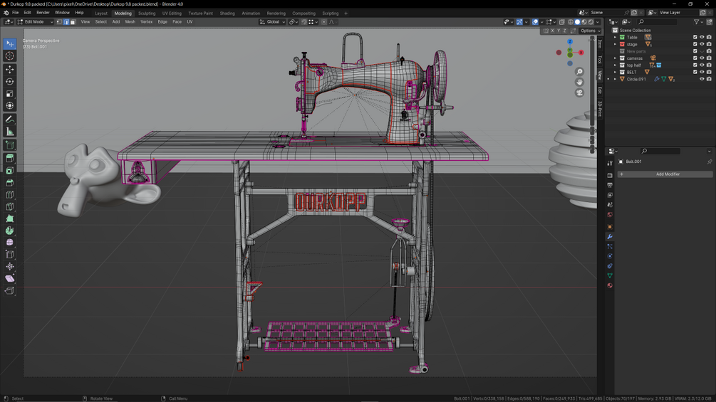 Blender 3d-model of a Durkopp German sewing machine created